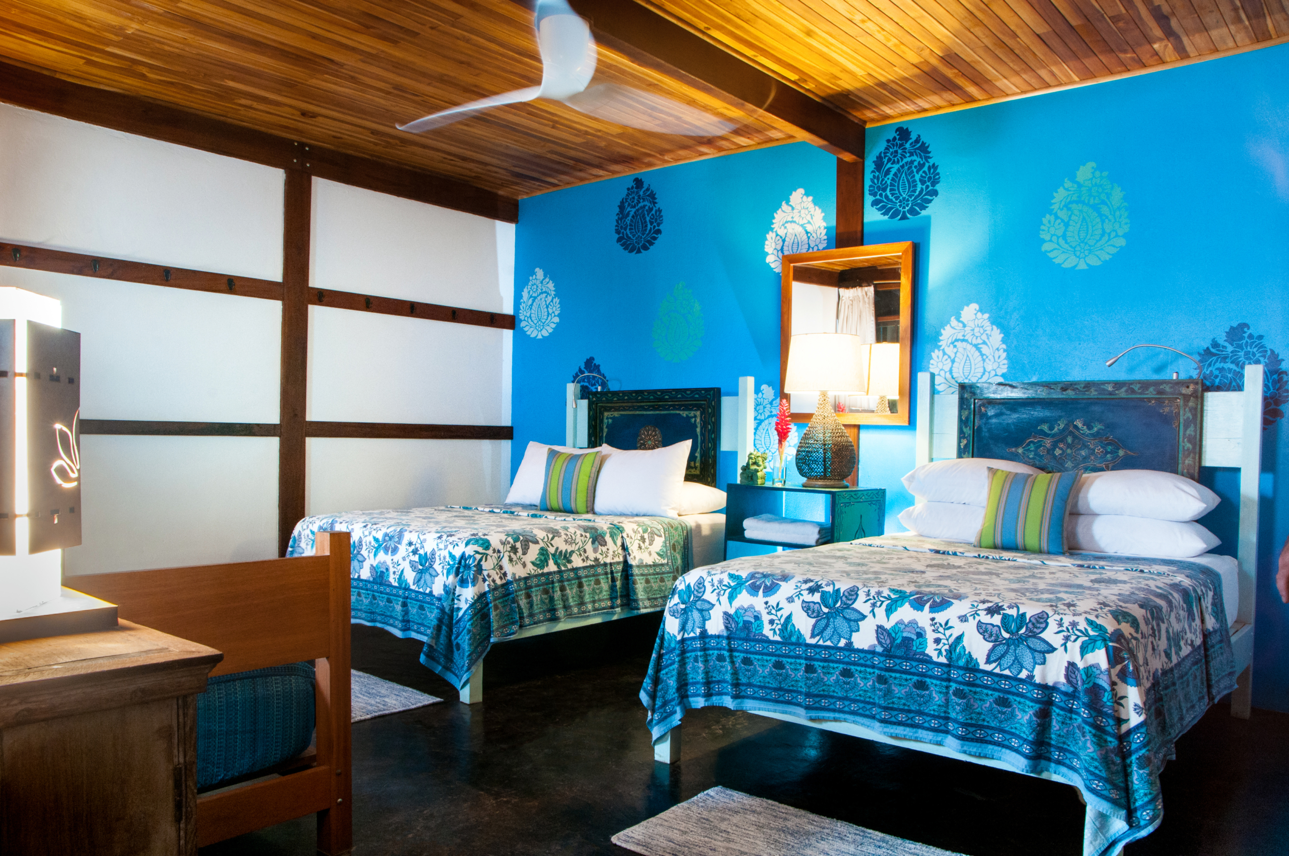 If you are in a shared room, you will be staying in a spacious and elegant room in one of Osa Blue’s rooms with an additional one or two roommates (one bed provided for each person). Each room has its own private bathroom. The types of beds in each room range from double bed to twin daybed to queen.